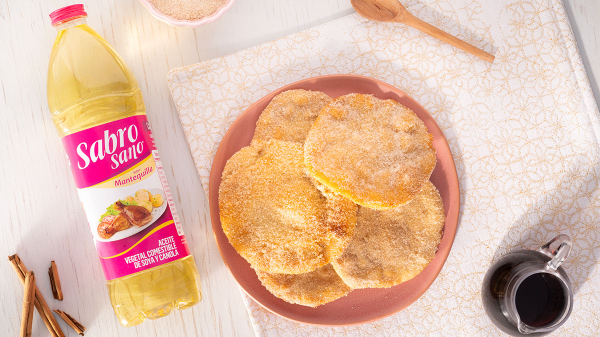 TIP SABROSANO: Te sugerimos usar Aceite Sabrosano Mantequilla ya que su alta resistencia al calor permite que los buñuelos queden doraditos y crujientes sin absorber demasiada grasa.