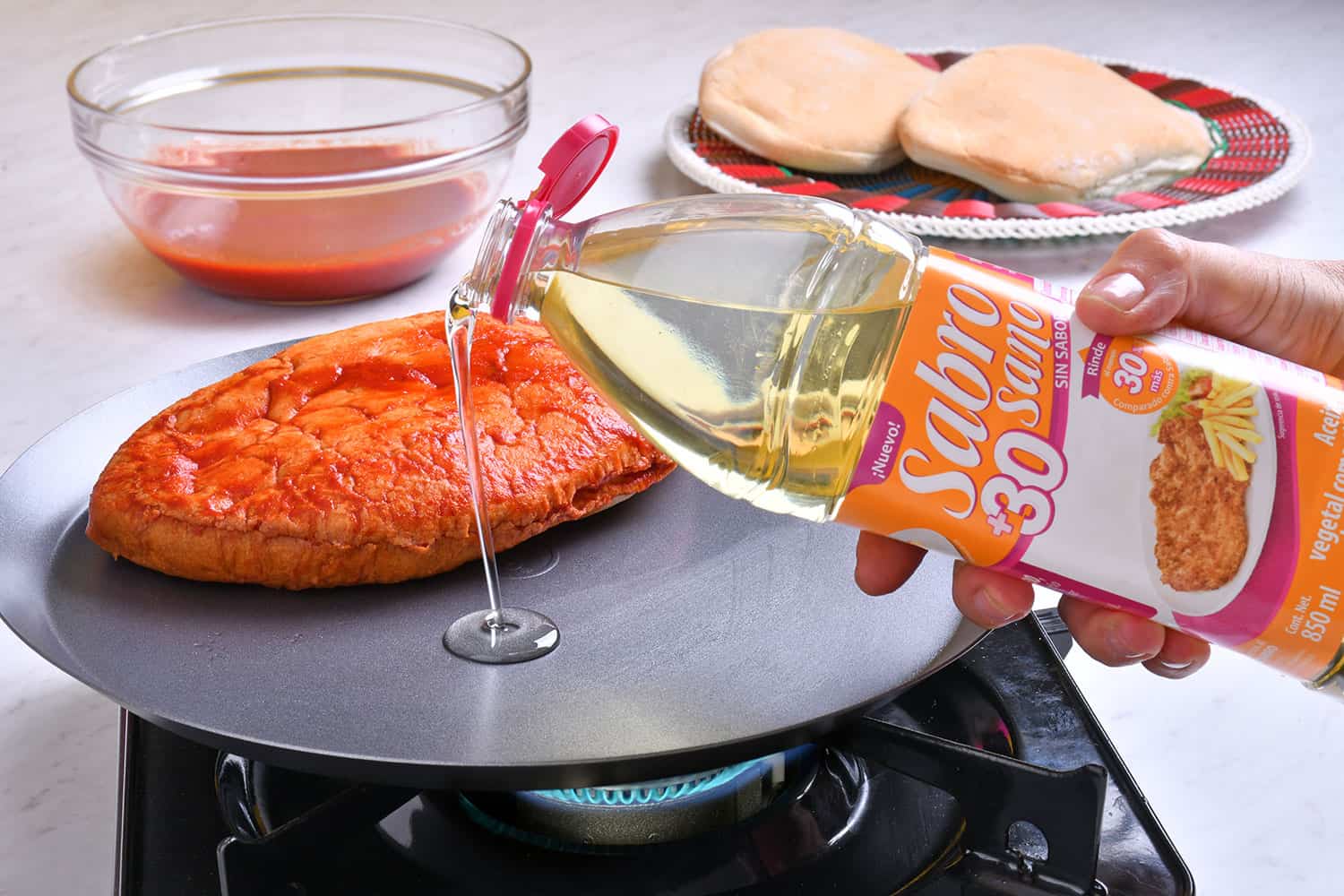 – En un sartén o comal calienta el aceite Sabrosano Mantequilla.