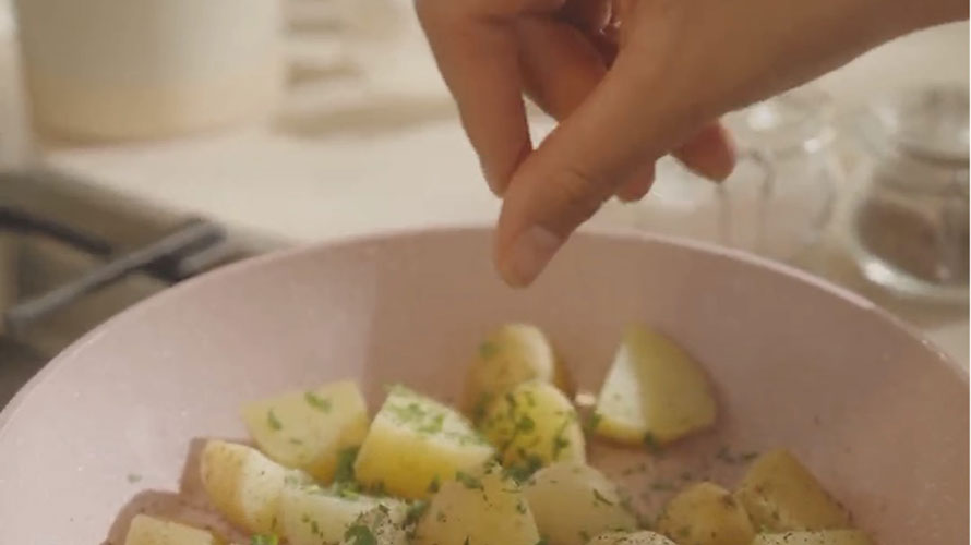 Corta las papas en cubos medianos con todo y cáscara. Saltea en un sartén con un poco de Aceite Sabrosano Mantequilla, ajo, perejil y las papas. Sazona con sal y pimienta.