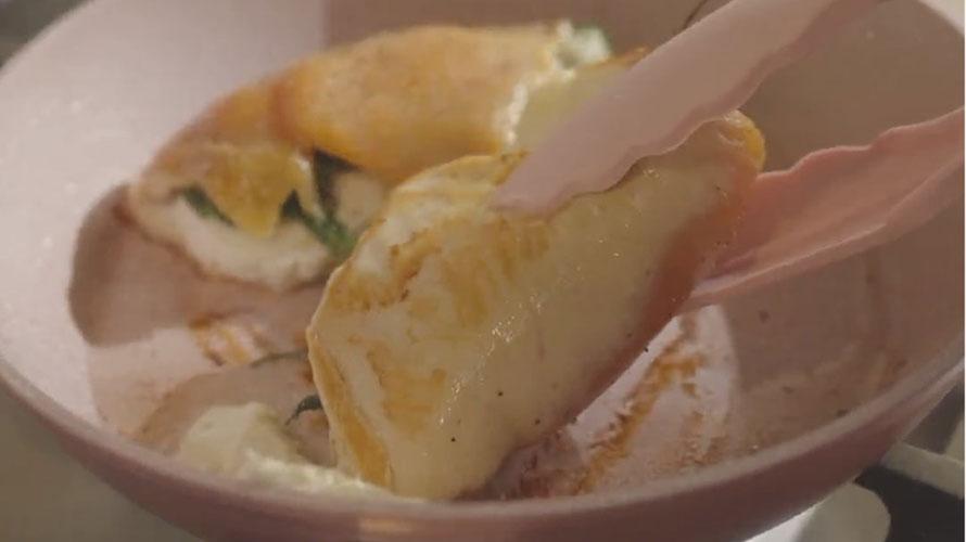 Sal pimienta las pechugas y coloca el relleno de romeritos, queso panela y queso mozzarella y dobla.